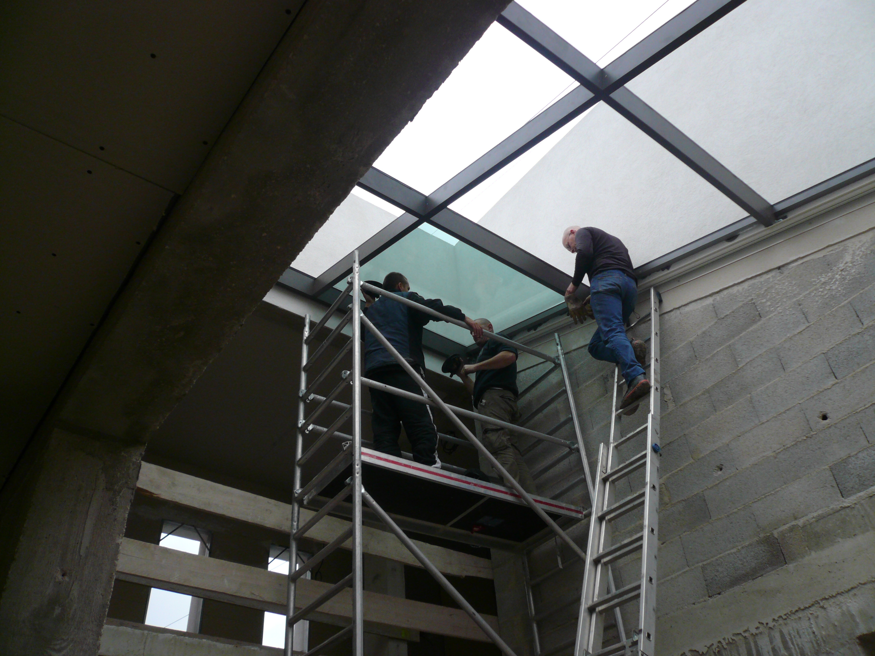Ci-contre la réalisation d'un puit de lumière au sein d'une villa contemporaine.